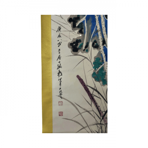 1940 年(庚辰年)是张大千艺术生涯的关键节点:此时他刚从敦煌临摹壁画归来,将敦煌的重彩、金线技法融入传统水墨,正处于 “传统技法集大成、泼彩技法初成型” 的黄金转型期。这类带明确纪年的转型期精品,是研究张大千艺术风格演变的标准器,学术价值与收藏价值远超普通晚年作品,存世量极为稀少。